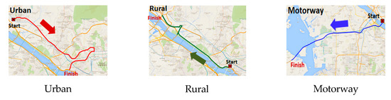 Driving routes for the Real Driving Emissions–Light-Duty Vehicles (RDE–LDV) cold-start test.