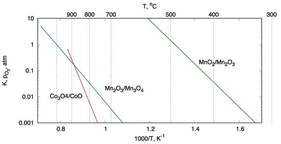 The reacting systems under exam, Mn2O3–Mn3O4 and Co3O4–Co, are characterized, respectively, by the following equilibrium reactions: