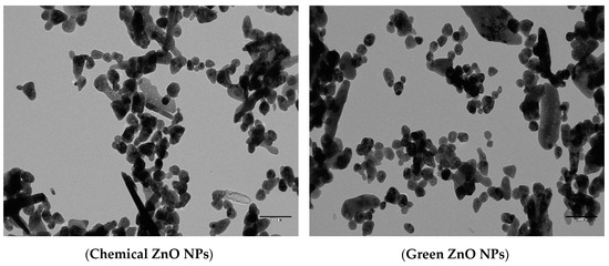 TEM photograph of chemical and green synthesized ZnO NPs.