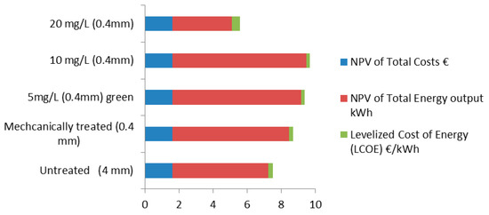 The calculations for cost-benefit analysis and LCOE were made only for green ZnO NPs due to their higher biogas yield than chemical ZnO NPs. The investment costs used to calculate LCOE and NPV are shown in Table 1.