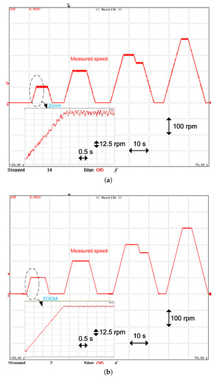 - Houari, A.; Bouabdallah, A.; Djerioui, A.; Machmoum, M.; Auger, F.; Darkawi, A.; Olivier, J.C.; Benkhoris, M.F. An Effective Compensation Technique for Speed Smoothness at Low-Speed Operation of PMSM Drives. IEEE Trans. Ind. Appl. 2018, 54, 647–655. [Google Scholar] [CrossRef]