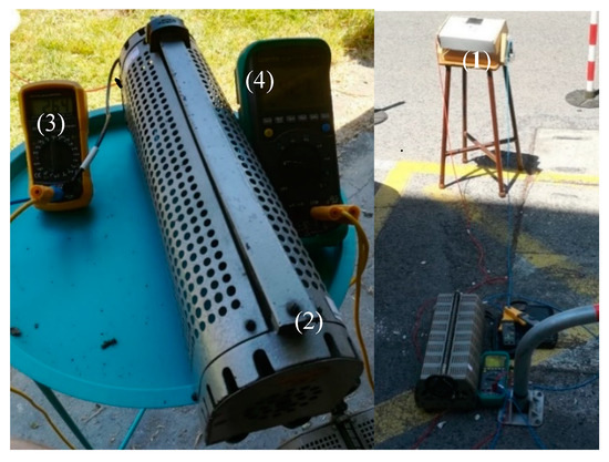 Experimental assembly. (1) Structure; (2) variable resistance; (3) ammeter and (4) voltmeter.