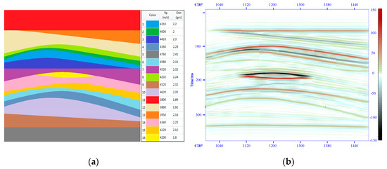 (a) Complicated geological model; and (b) synthetic seismic section.