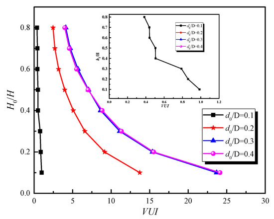 The variation in VUI in sinter layers with different normalized outlet scales and inset. VUI varies with sinter layers at the normalized outlet equal to 1.