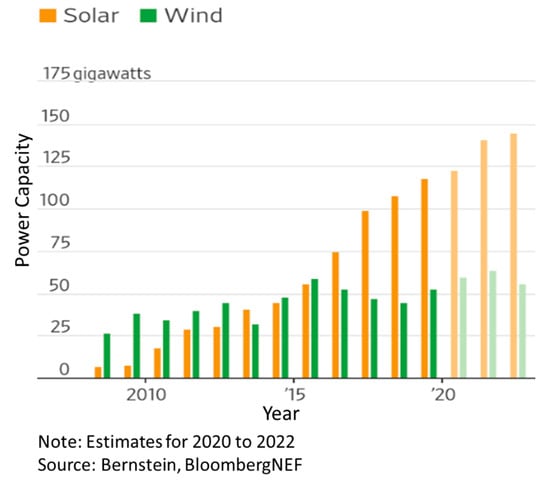 - PV Magazine: The World Added. 115 Terawatts of Solar Power in 2019 for a Cumulative. 629 Terawatts. Available online: https://pv-magazine-usa.com/2020/04/30/the-world-added-115-terawatts-of-solar-power-in-2019-for-a-cumulative-629-terawatts/ (accessed on 5 June 2020).