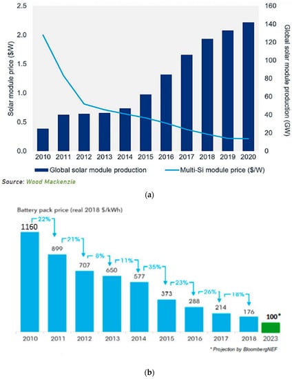 2.1. Cost Trends in PV and Battery Systems