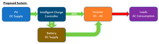 - Building:From PV to battery charging: minimum DC-DC losses (neglected);From PV to load: inverter loss;From battery to load: inverter loss + battery cycling loss.