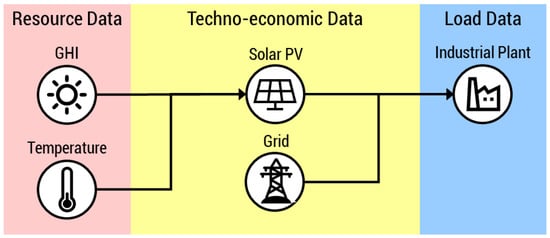 The Philippine industrial sector contributed to around 35% of the country’s gross domestic product in 2019 [1]. Unfortunately, its development is hampered by the high cost of electricity (~USD 0.19/kWh), which ranks as the second highest in Asia [2]. In addition, the large energy consumption of the industrial sector is met with environmental pressure due to the CO2 emissions associated with the country’s energy mix. To solve these problems, the implementation of rooftop solar photovoltaic (PV) on industrial facilities has been investigated due to the ample solar energy potential in the Philippines [3]. The displacement of energy from the grid by solar PV generation can reduce emissions, while selling excess solar PV generation to the grid via net metering may yield profits [4]. Typically, these systems show a payback period (PBP) from 3 to 11 years and an internal rate of return (IRR) between 21% to 29% [5,6,7,8]. Furthermore, the feasibility of simultaneous heating and energy generation from solar PV has been demonstrated in other countries [9].