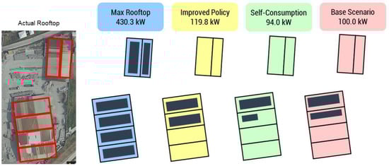 Illustration of the installed solar PV on the cement plant’s rooftop under each scenario.