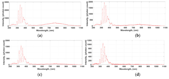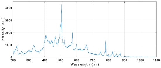For the purpose of interpretation and analysis of recorded optical signals, the following division of the spectral range was assumed: ultraviolet radiation (UV, from 200 to 380 nm), visible light (VIS, from 380 to 780 nm) and near-infrared (NIR, from 780 to 1100 nm). Each measurement cycle was preceded by a background light calibration procedure.