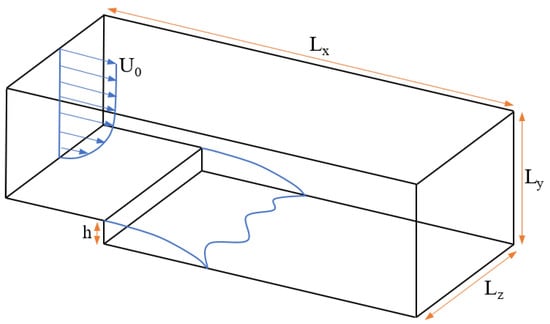The setup simulation was set according to Le and Moin’s []. The computational domain (see Figure 5) is defined with the following dimensions: m (10 m prior to the step and a 20 h post-expansion section), m, m and m, giving an expansion ratio is .