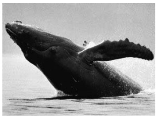 Tubercles were proposed to soften aerodynamic characteristics near stall, the origin of this idea goes back to Humpback whale’s fins [] (see Figure 15), which evolved during millions of years of evolution to enhance manoeuvrability in water. For example, an amazing feature of the humpback is its acrobatic behavior during feeding known as bubble netting. These whale’s fins operate at Reynolds numbers, Re , based on the sea water viscosity and density at 16 C.