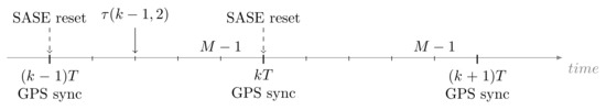 referring to the k-th resync instant and to the t-th measurements within , see Figure 2. For simplification in the following will be used instead