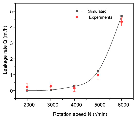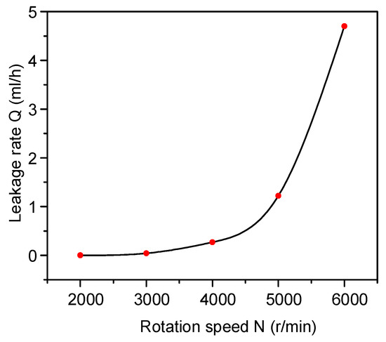 Figure 10 shows the variation in the leakage rate with the operating speed. As the working speed increased, the leakage rate also increased. However, from the perspective of the whole change process, the change in the early stage was slow, and a sharp change occurred in the late stage.