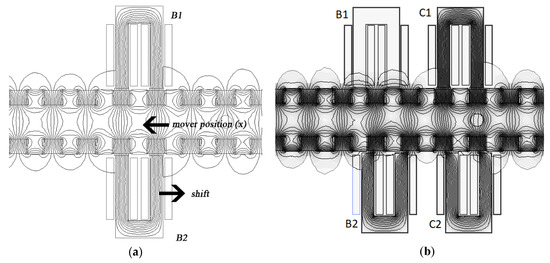 Figure 6a shows the flux line distribution for a given position considering only phase B.
