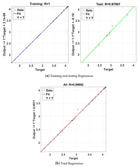 MSE is the second moment of the error, RMSE is the Root Mean Squared Error, and MAPE is Mean Absolute Percentage Error. MSE, RMSE, and MAPE are standard deviations of the prediction errors. MSE, RMSE, and MAPE show how much the prediction values are close to the fit line (regression line) [83,84]. MSE, RMSE and MAPE are formulated as in Equations (5)–(7) that and are observed value and predicted value of the RCEC, respectively. The n and k show the number of evaluated pairs of datasets. They are representatives of the first and the last pair of RCEC values.