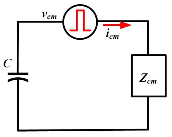 where, means the CM impedance of the dc-link capacitors (), and represents the CM impedance of the motor plus connection wire and grounding line. The is the source of CM EMI, and can be written as: