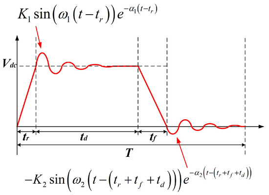 Generally, the analytical switching waveform of the drain-source voltage of the SiC MOSFET can be approximated as asymmetric trapezoid wave plus decayed sine wave (see Figure 5). With the Fourier Transformation, the spectrum of can be derived in (3)∼(5) [23].
