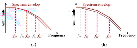 The spectrum envelop of the drain-source voltage of the SiC MOSFET () mentioned in [8] is shown in Figure 28. Obviously, the spectrum envelop of the is determined by corner frequencies (, , and ), which depends largely on switching characteristics of the SiC MOSFET. Relationships between switching characteristics of the MOSFET and corner frequencies of the spectrum envelop can be expressed as [8]: