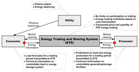 - All P2P trading participants’ information about load forecasts, generation predictions, and the involvement of controllable generating facilities including energy storage system (ESS) in the P2P energy trading will be automatically transmitted to ETS through their intelligent electronic device (IED) prior to planning for the P2P energy trading.