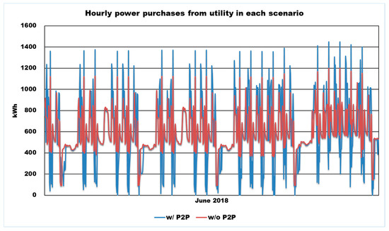 Comparison of hourly power purchases from utility in each scenario.