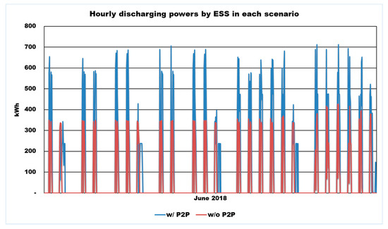 Comparison of hourly discharging powers by ESS in each scenario.