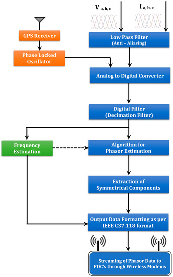 In modern electric power systems, synchronized phasor measurements are widely deployed for monitoring, protection, and control of power grids. The block diagram of the micro-phasor measurement unit (µPMU) [53] is shown in Figure 4.