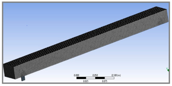 - Case I: Pure natural gas and air (NG + Air) were allowed to enter the combustor as a mixture of fuel and oxidizer, through both the inlets (fuel and air inlets) at 300 K with varying velocities of 0.5 m/s−1 and 0.7 m/s−1. Species fractions were selected based on A/F = 10/1. Intermediate or moderate inlet velocities (0.5 m/s−1 and 0.7 m/s−1) have been selected based on the combustor length (0.5 m). Too fast, and the reactants could not get enough time to get mixed and react within the combustor. Too slow, and the chances of flame out increase.