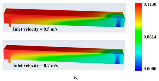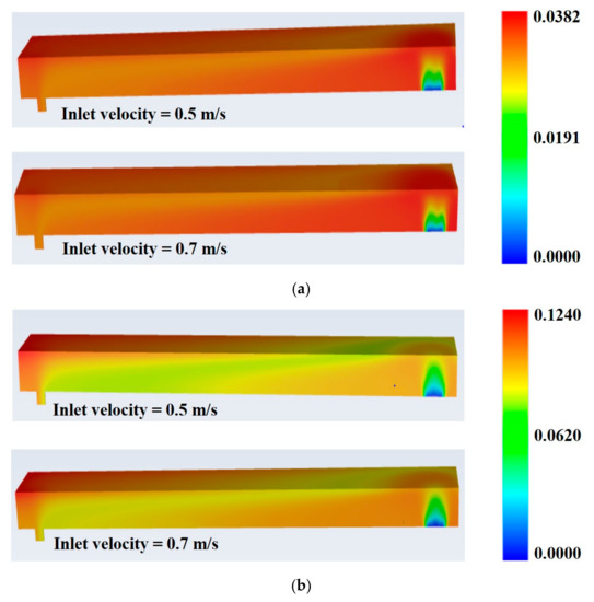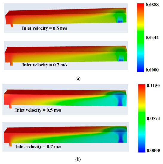 | Case | Inlet Velocity = 0.5 m/s | Inlet Velocity = 0.7 m/s | ||||||