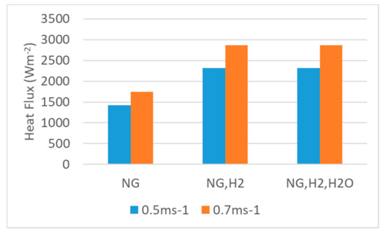 - A 38% and 39% increase in the heat flux from the top wall of the combustor attached to the reformer is observed at 0.5 m/s and 0.7 m/s inlet velocity, respectively.