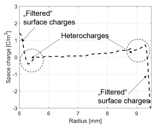 Homocharges are injected charges that are trapped close to the electrode, if charge injection exceeds the drift [2,37]. The presence of some impurities, e.g., cumyl alcohol, a byproduct of the XLPE crosslinking agent dicumyl peroxide (DCP), increase the trap density near the electrodes and supports the accumulation of homocharges [38].