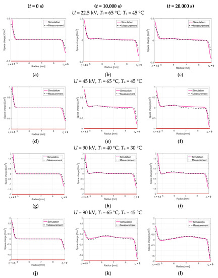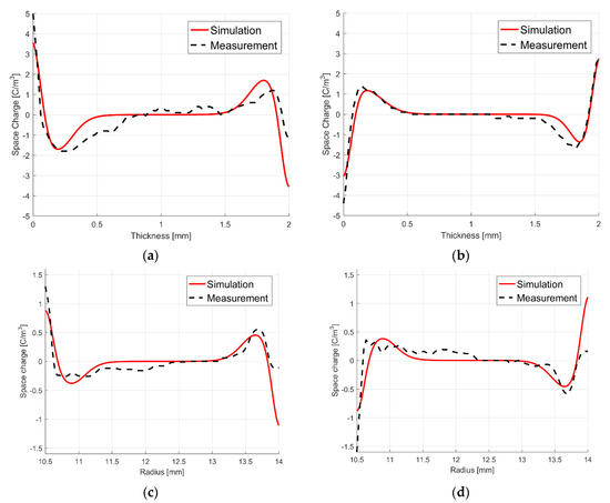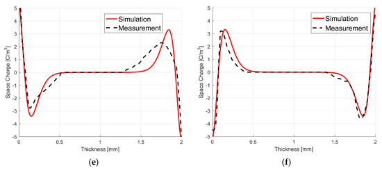 - Jörgens, C.; Clemens, M. Conductivity-based model for the simulation of homocharges and heterocharges in XLPE high-voltage direct current cable insulation. IET Sci. Meas. Technol. 2019, 13, 975–983. [Google Scholar] [CrossRef]