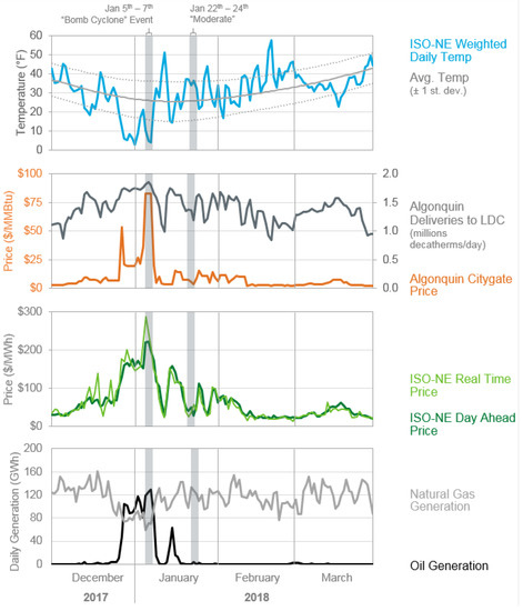 - EIA. Northeastern Winter Energy Alert. Energy Market Alerts. 2018. Available online: https://www.eia.gov/special/alert/east_coast/ (accessed on 12 September 2019).