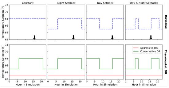 | Conservative DR (6 °F) | Setback homes by 6 °F overnight (9 h) | |