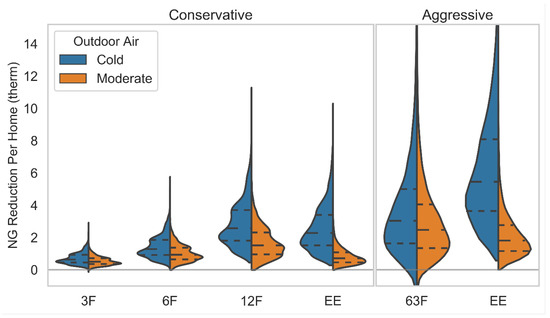 | Conservative (3 °F) | Setback homes by 3 °F overnight (9 h) | Homes with constant heating setpoints (46%) |