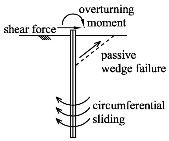 Schematic representation of the soil-failure mechanisms for laterally loaded piles.