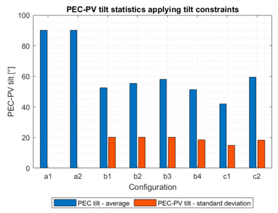 PEC(-PV) device tilt constraints have to be taken into account to further assess these configurations. Minimal to moderate restrictions apply for Config. b1 and b2, where the PEC(-PV) device is perpendicular to the optical aperture.