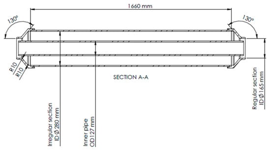 The second to the last fifth length of the outer pipe was replaced by a larger diameter pipe, simulating a wash out section as indicated by the colored section in Figure 2.