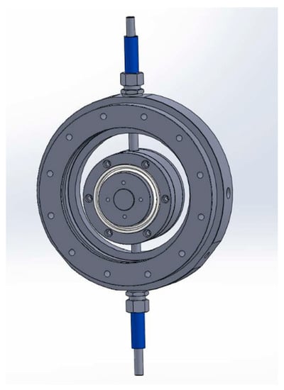 The inner pipe was supported by bearing joints (see Figure 4) every 2 m at the wellbore section connections to prevent inner pipe sagging. The bearing joint consists of an outer flange supporting the outer pipe, an inner pipe bearing set to support the inner pipe and to transmit torque between sections of inner pipe, and bolts to fix the inner pipe bearing laterally and to allow adjustment of eccentricity. The bolts each have a diameter of 10 mm. This represents about 4.4% of the cross-section area of the annulus and is thus expected to have a minimal impact on the flow and displacement.