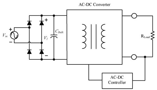 Although the energy-saving performance of LED light sources is superior to that of conventional light sources, specific voltage-converting equipment is required in order to achieve the rated voltage and current required for LEDs to function properly. In addition, different LED luminaires are equipped with different converters. The use of an adequate and highly efficient LED power converter is critical. Figure 2 presents the framework of the flyback converter used in this study. The PFC circuit is added to the first stage because most modern electrical appliances have nonlinear loads, which result in phase angle deviation between the input voltage and input current and causes a reduction in the power factor. In addition, the input current generates an enormous amount of harmonic waves after a bridge rectification. The power supply quality and system efficiency tend to be low under the influence of low power factor and large amounts of harmonic waves. Therefore, existing power supplies and drivers on the market are equipped with PFC circuits to suppress harmonic waves of the current and increase the power factor to prolong the life expectancy [].