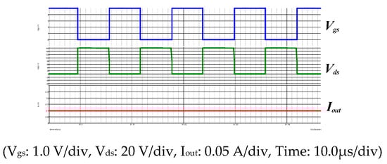 Simulation of Vgs, Vds and Iout (Vin = 85 V; Vout = 12 V).