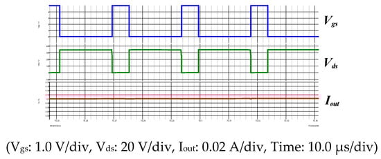 Simulation of Vgs, Vds and Iout (Vin = 265 V; Vout = 12 V).