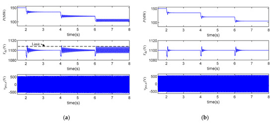 Meanwhile, it can be found that the increase in Kpdc leads to increase the mode damping under the same active power output condition. When the damping of the SSO mode is small, the stability can be improved by increasing Kpdc. Comparing Figure 9a,c with Figure 9b,d, it can be seen that better and improved system stability can be achieved by simultaneously decreasing Kipll and increasing Kpdc.