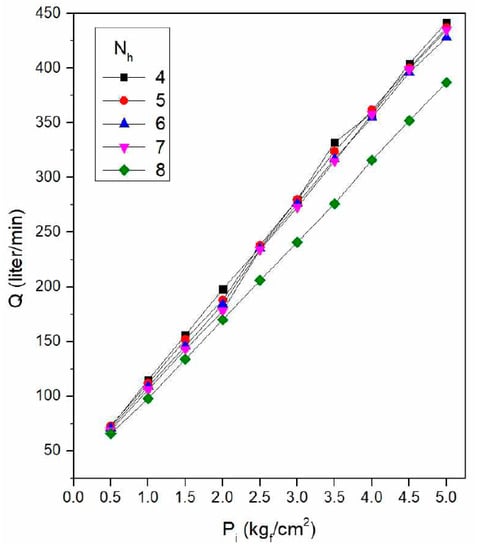 As an initial experiment, we tried to determine the total flow rate according to the supply pressure. The table that summarizes the data according to the number of nozzles is shown in Figure 21.
