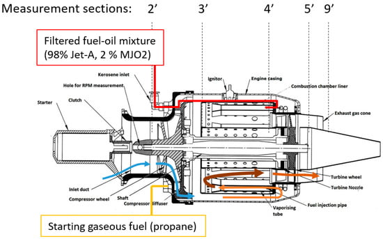 - Kamps, T. Model Jet Engines, 3rd ed.; Traplet Publications: Worcestershire, UK, 2005; pp. 22–92. [Google Scholar]