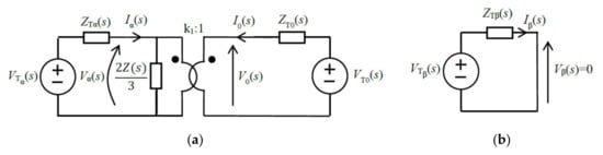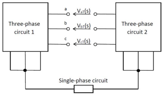 Figure 4). The second step foresees the Clarke transformation and circuit implementation of the relationships describing the three-phase port S. To this aim, two cases can be considered, i.e., single-line switching (phase