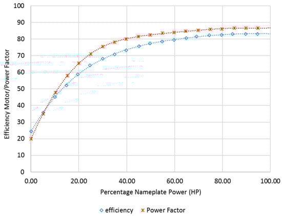 Motor losses are calculated by multiplying the electrical power into the motor by the ESP motor efficiency factor, which is extracted from the motor efficiency curve, as indicated in Equation (12).