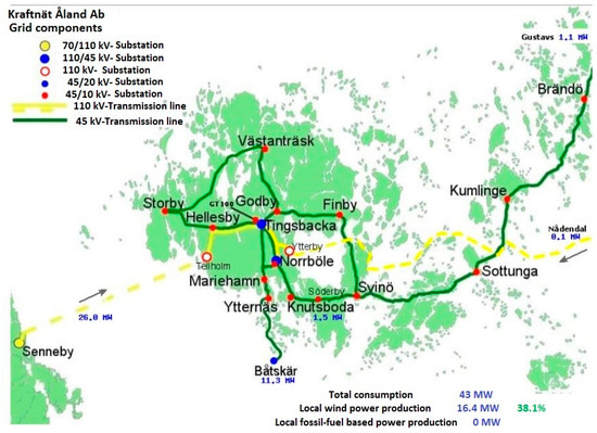 - Geogrhical Location and Electrical Network of Åland Islands. Available online: http://www.kraftnat.ax/text2.con?iPage=28&iLan=1 (accessed on 18 October 2019).