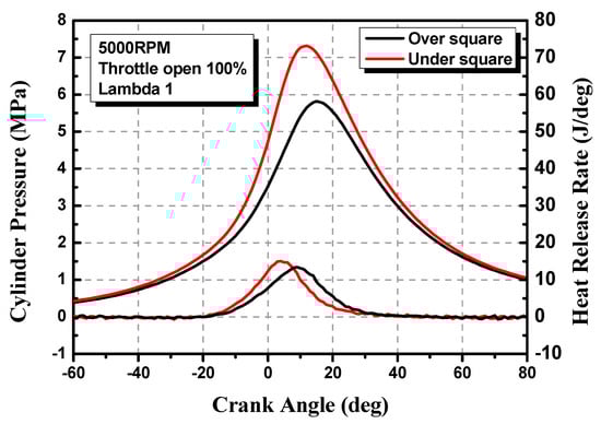 In-cylinder pressure and heat release rates for over- and under-square engines.