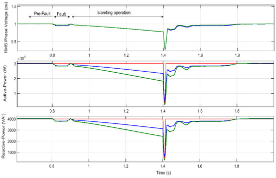 5.2. Dynamic Model Analysis during Islanding